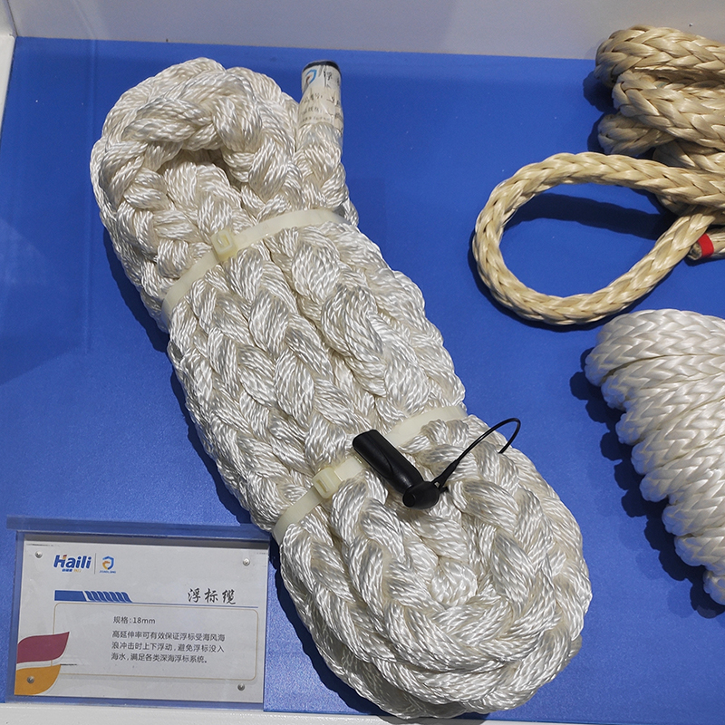 采用優(yōu)質(zhì)高強尼龍纖維,可定制直徑15mm~60mm浮標專用繩纜,經(jīng)過特殊后整理工藝,斷裂強力50kN~600kN,延伸率20%~45%,高延伸率可有效保證浮標受海風海浪沖擊時上下浮動,避免浮標沒入海水,這款浮標纜繩滿足各類深海浮標系統(tǒng)。